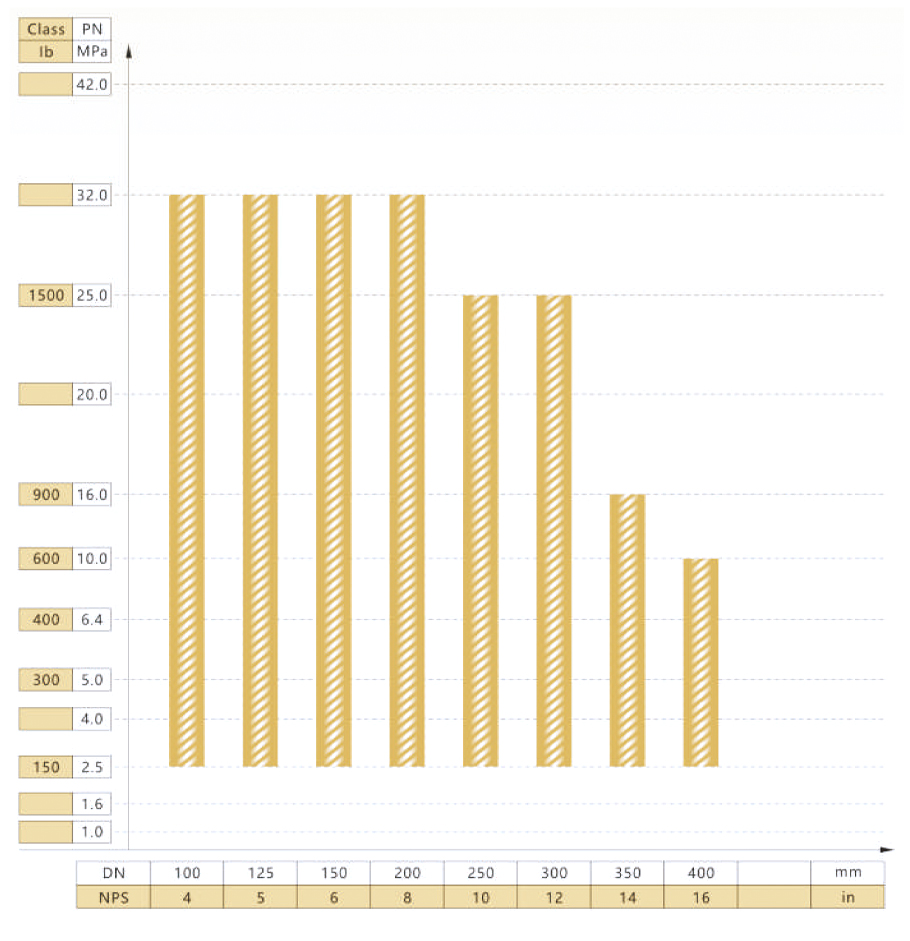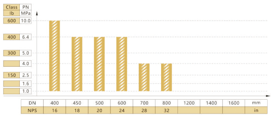 FSJ-H400型阀门公称通径与公称压力试验范围