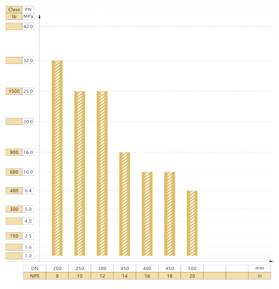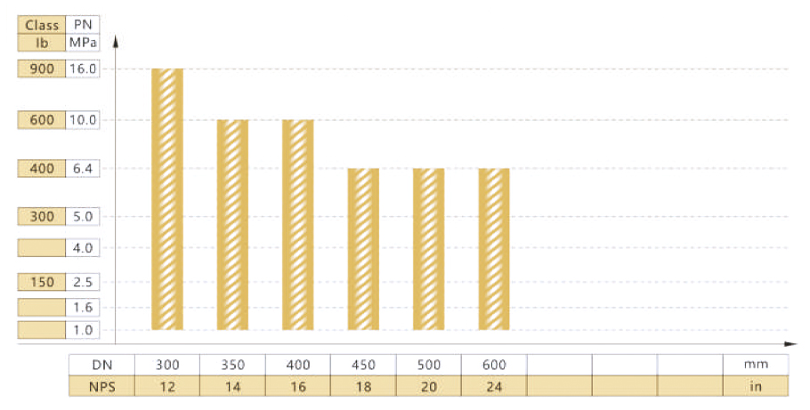 FSJ-H500型阀门公称通径与公称压力试验范围